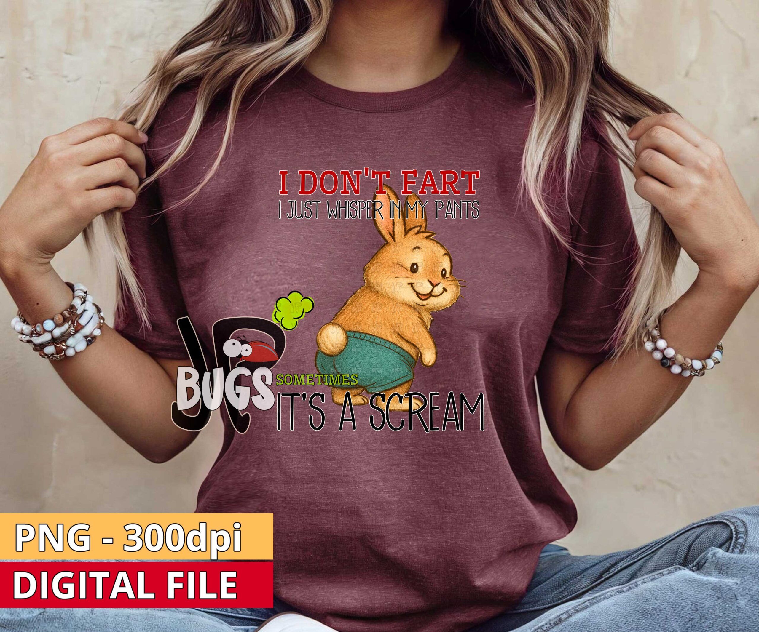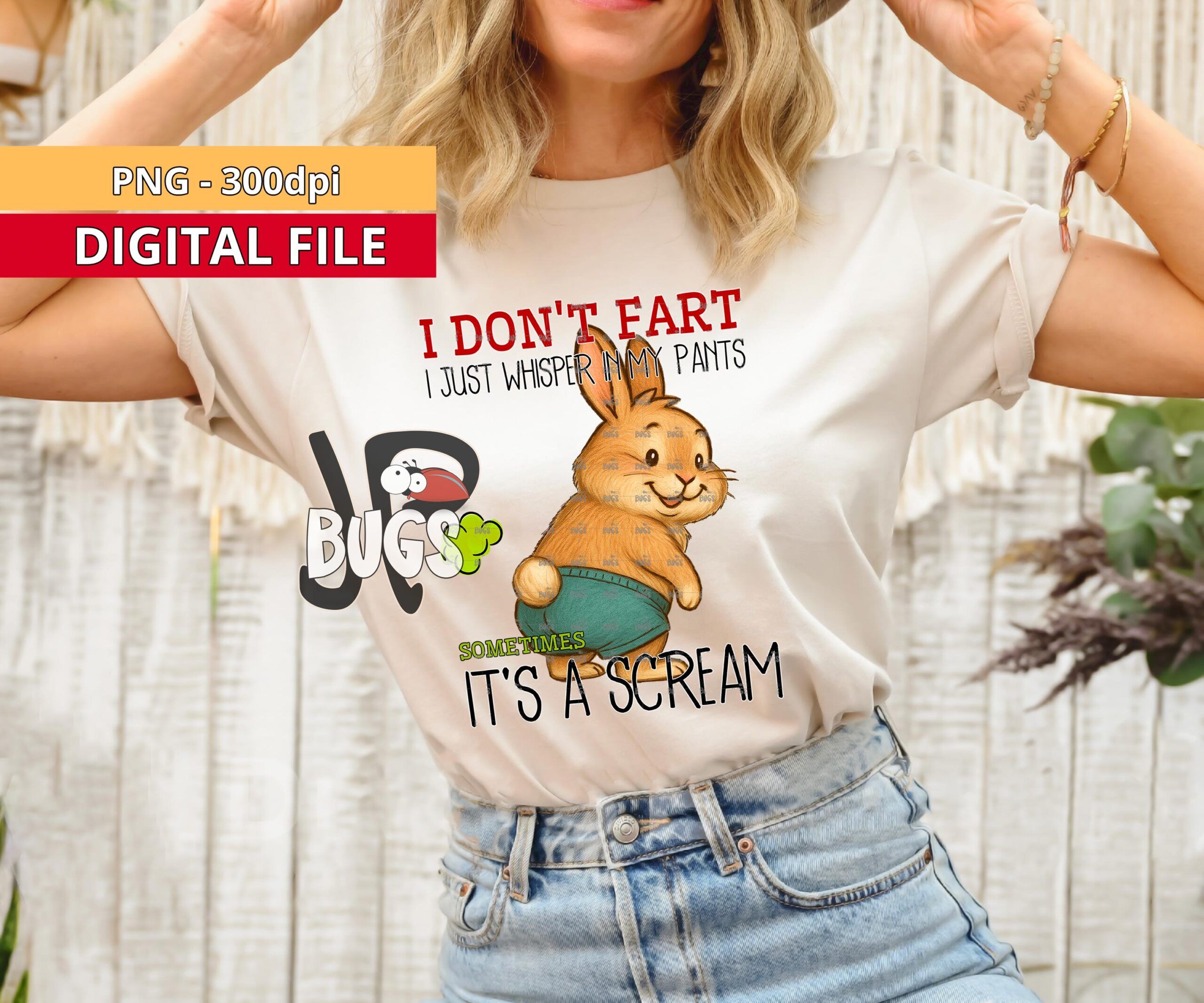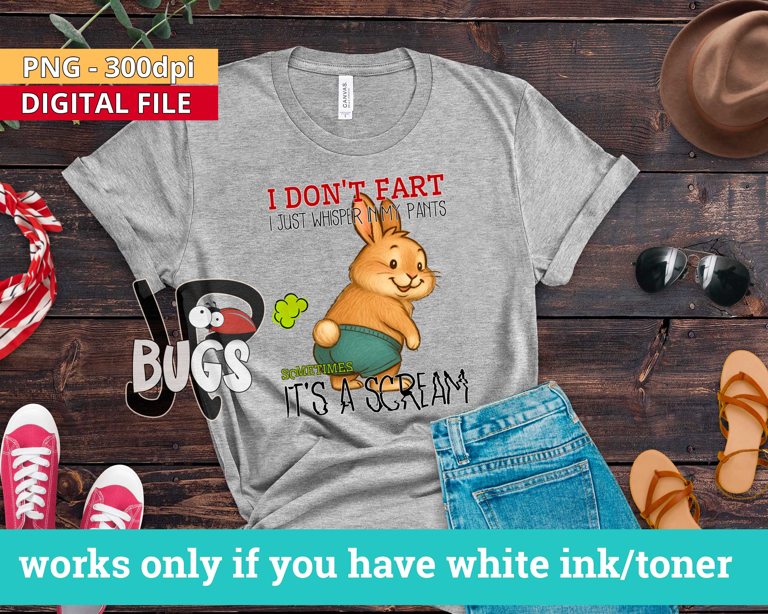 Funny Bunny Fart Whisper PNG Don’t Fart I Just Whisper in My Pants Sarcastic Quote Sublimation Design Gag Gift Humor Shirt Clipart