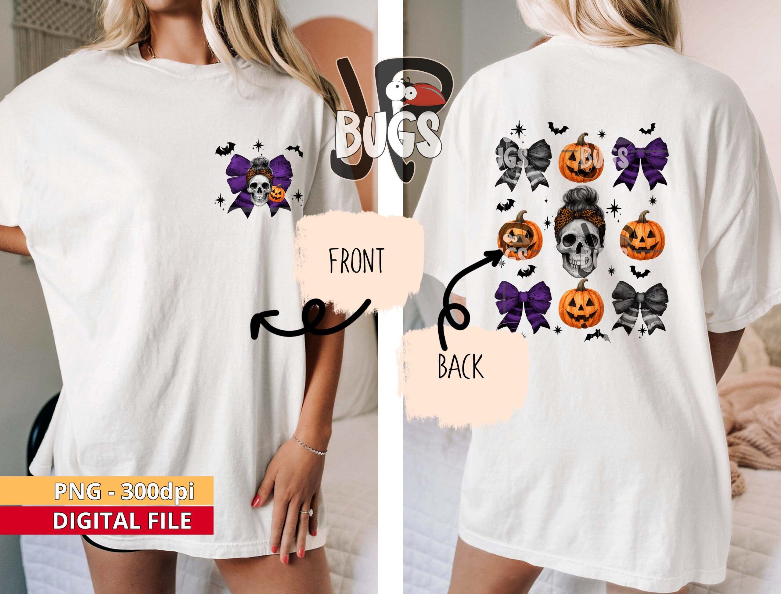Halloween Coquette bow PNG Cute Bow Pumpkin Skull Clipart Front & Back Design Sublimation Shirt Digital Download