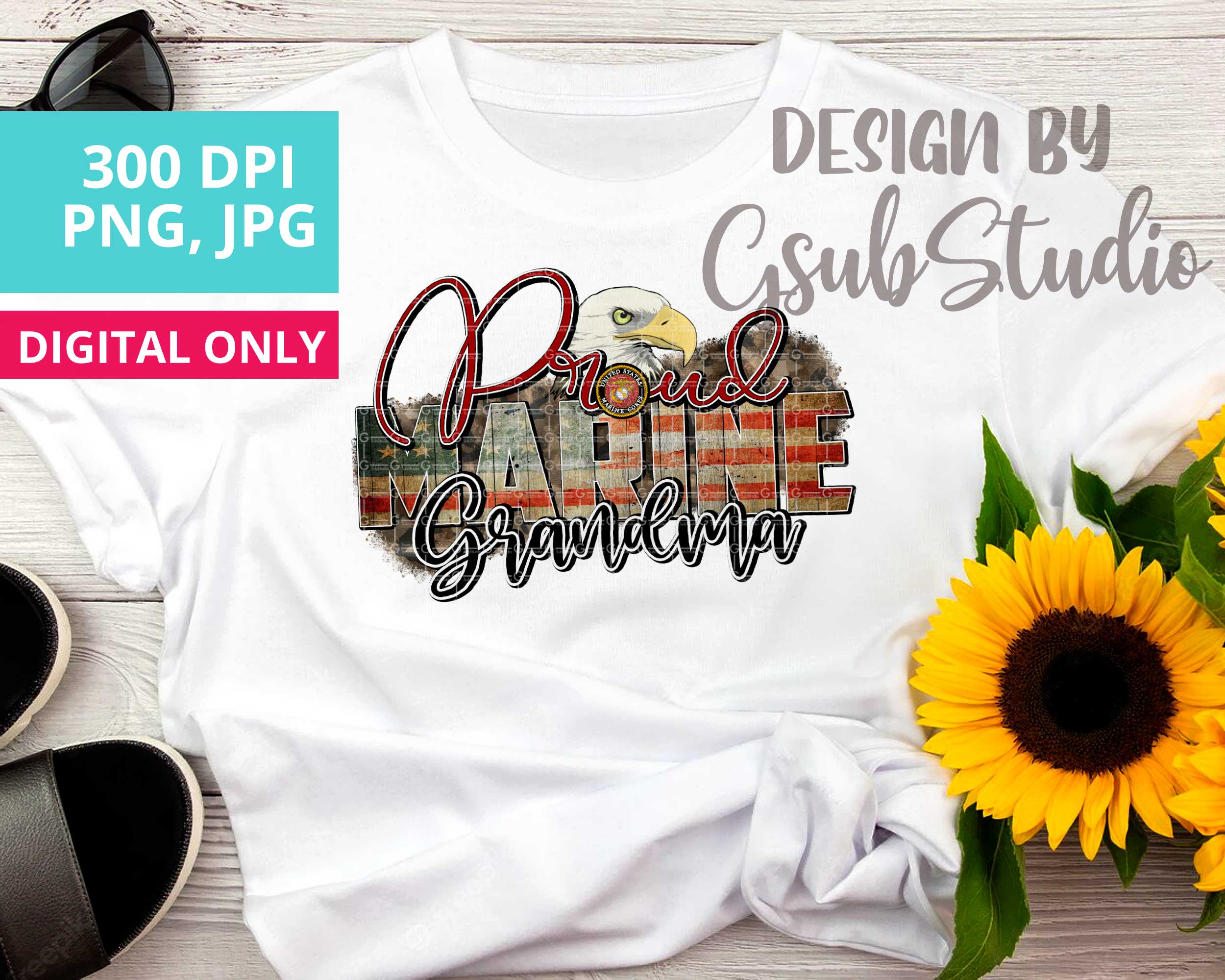 Proud Marine Grandma PNG file | PNG for Sublimation | Digital Download | Instant Download | military Grandma | DTG print | Marine Grandma t-shirt design