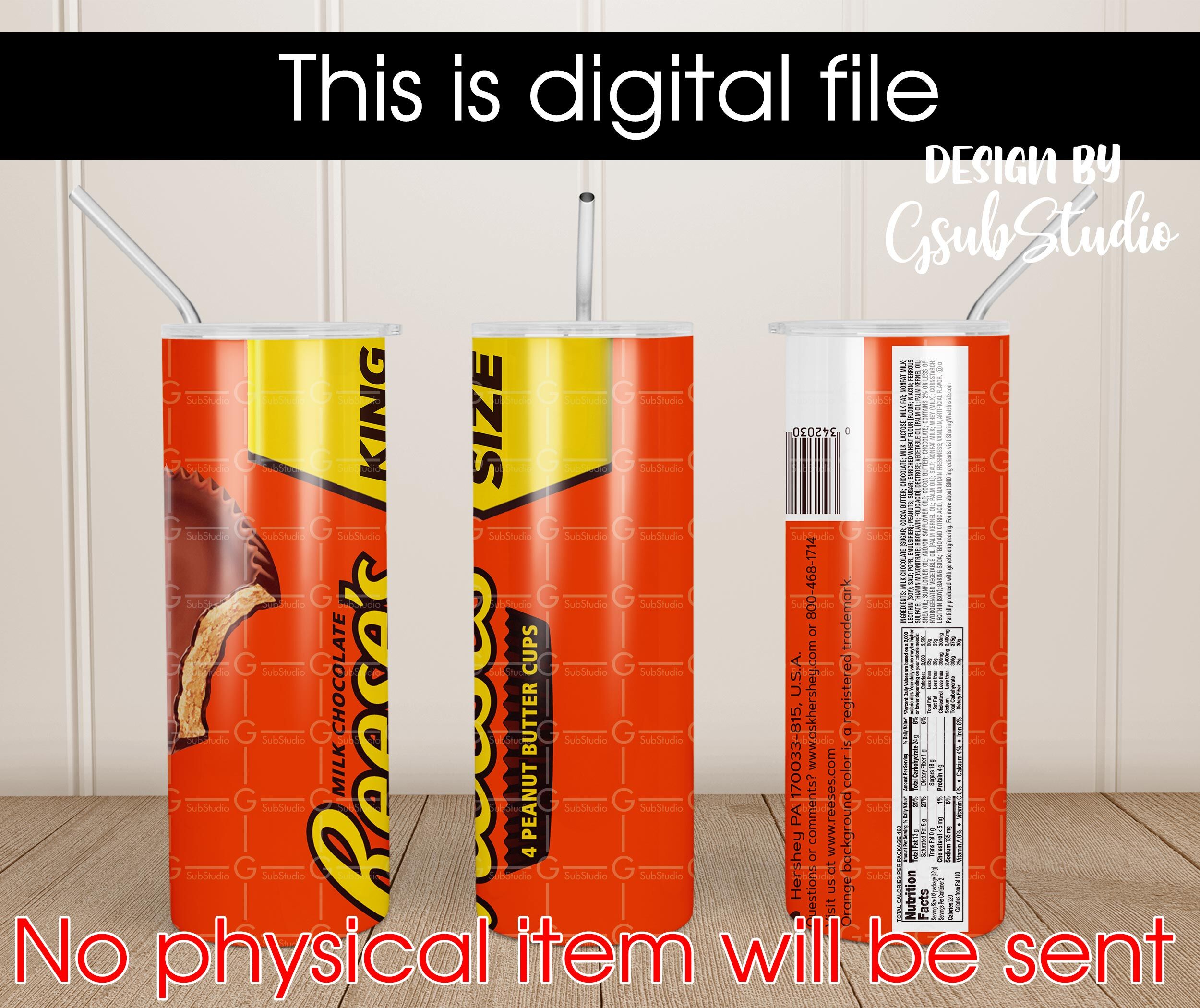 Reese’s Candy king size Tumbler Wrap, Reese’s Candy 20oz Skinny Tumbler